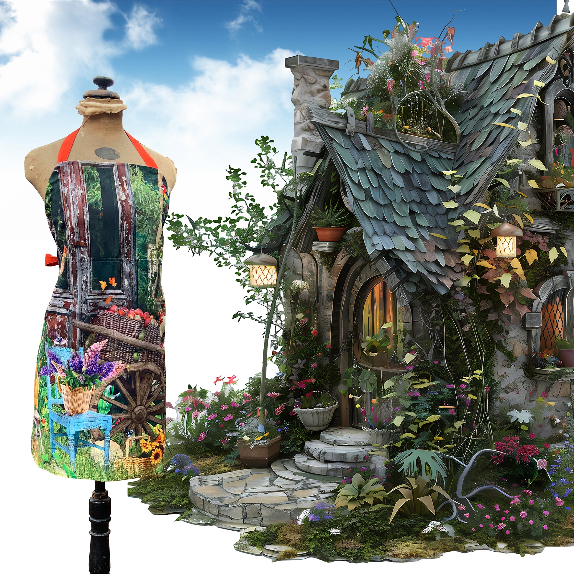 "Wear the magic of the garden." Our Secret Garden Canvas Apron is a burst of country charm you can wear! Featuring rustic barn-wood, blooming flowers and vibrant red straps, this apron is perfect for gardening, cooking or simply bringing a touch of magic into your day.