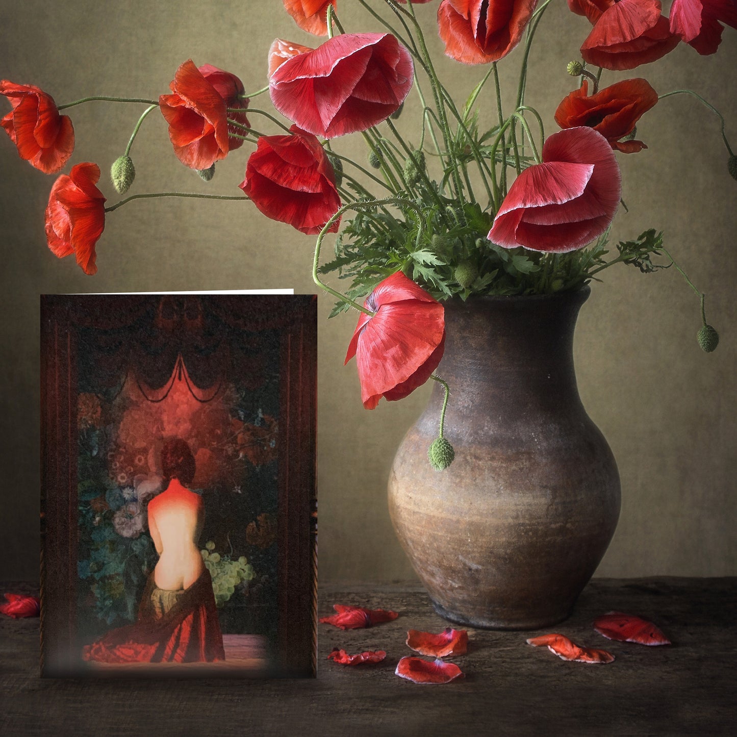 " A Quiet Moment” gift card features a show girl on her stage in a quiet moment.