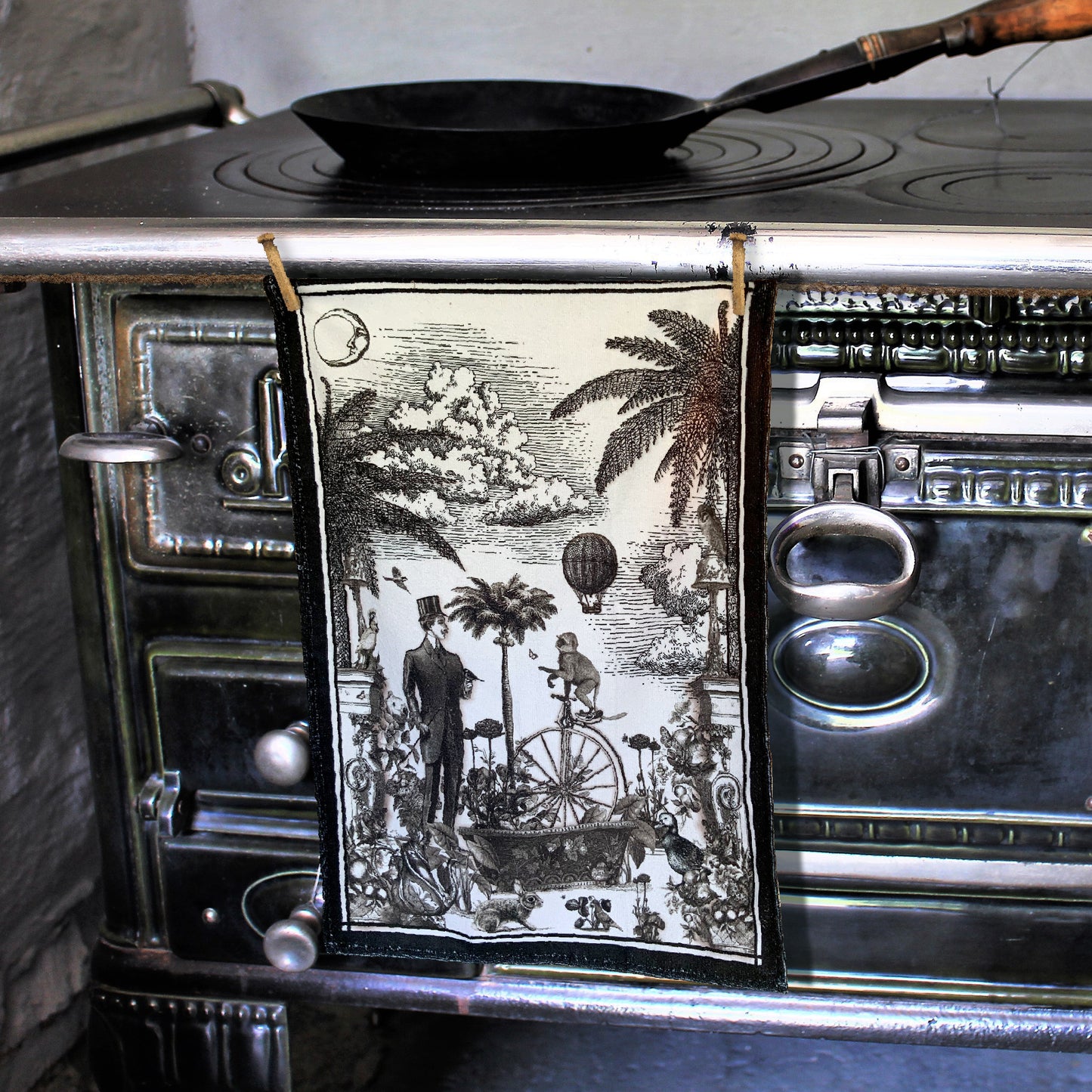 "Monkey Business" Microfibre Hand Towel is an elegant monochrome eclectic mix of Victorian exotica with a touch of steampunk.