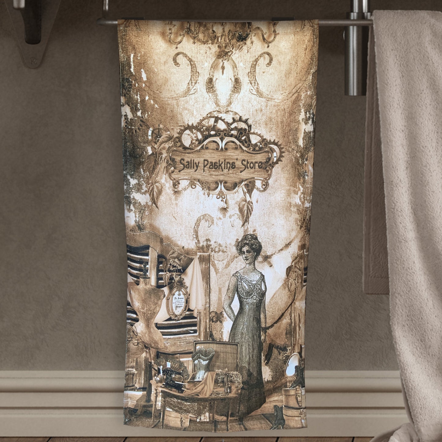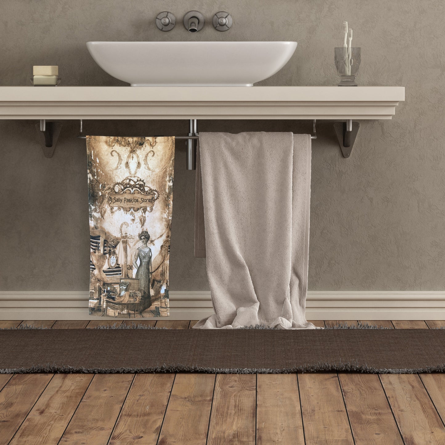 BATHROOM HAND TOWEL "The Bourdiour" Sepia (Long Version)