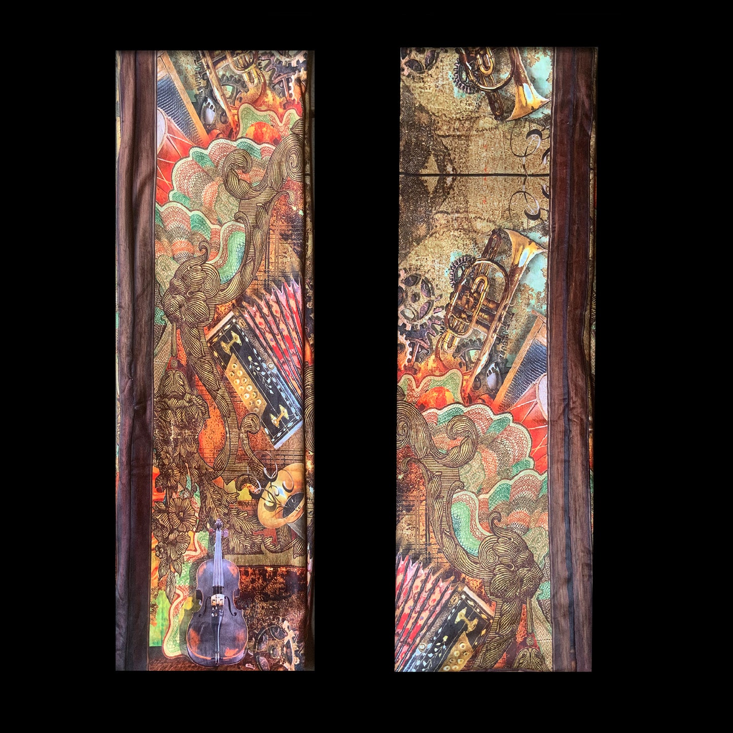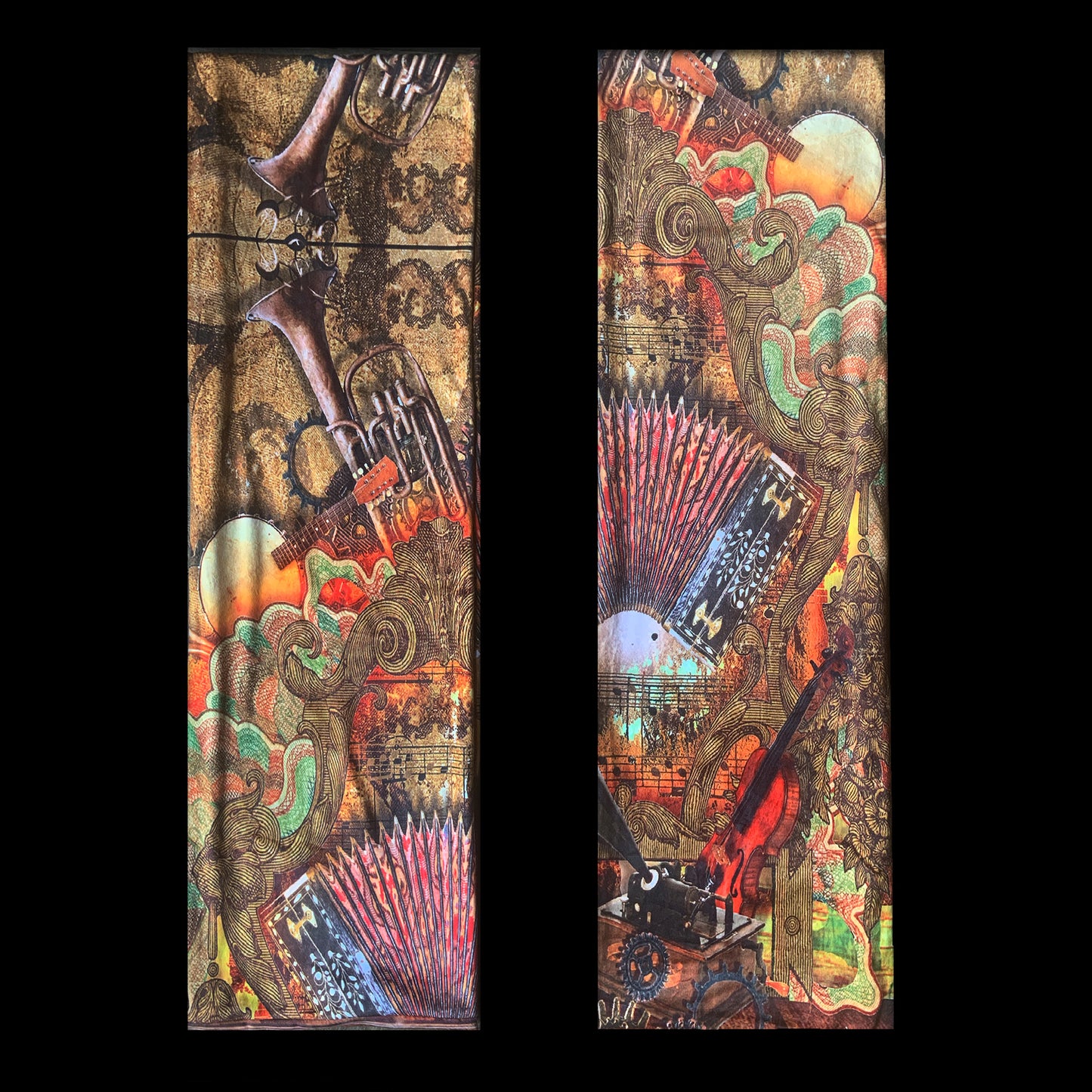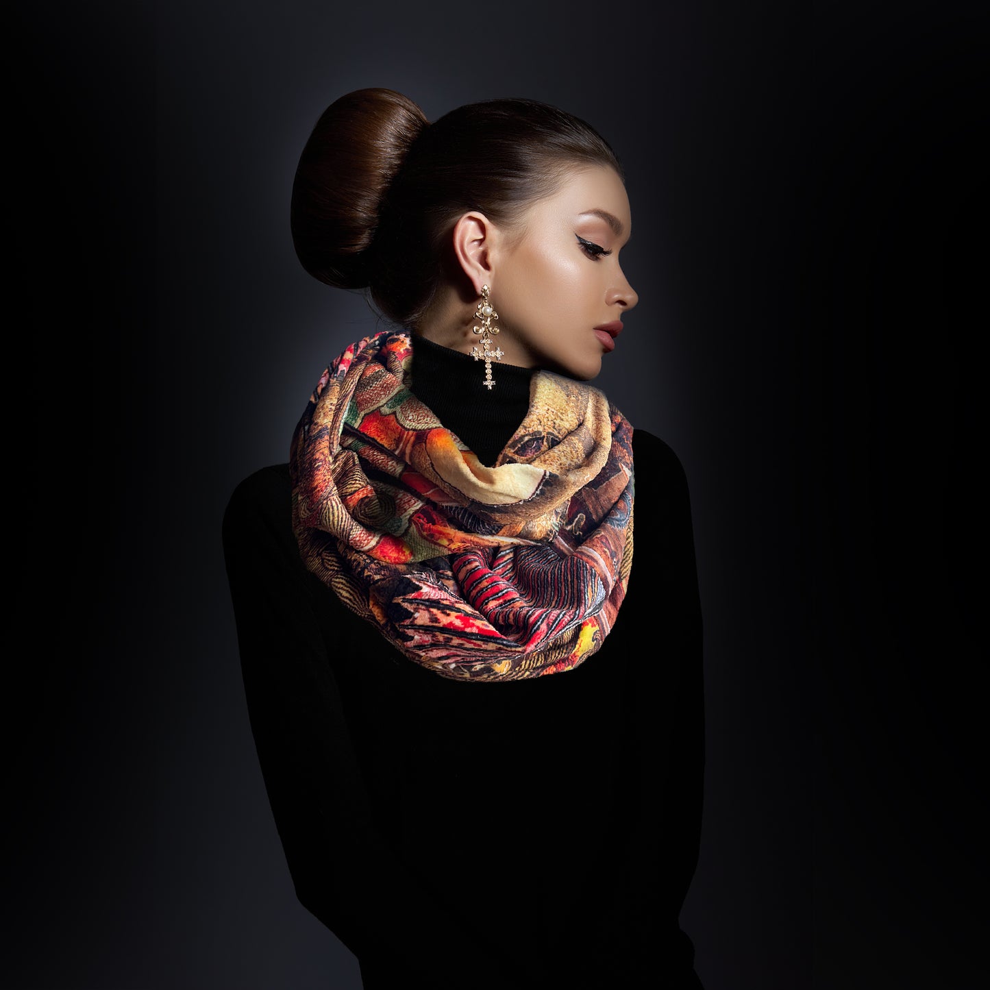 Our "Let the band play" Minky Velvet Infinity scarf is stretchy and double layered. This scarf is elegant and colorful and is a wonderful addition to your winter wardrobe. Comfortably perfect for casual daytime wear and ideal for cold evenings. This tubular design can be reversed for added versatility as there are four variations of patterns. It even comes with its own matching velvet bag for storage.