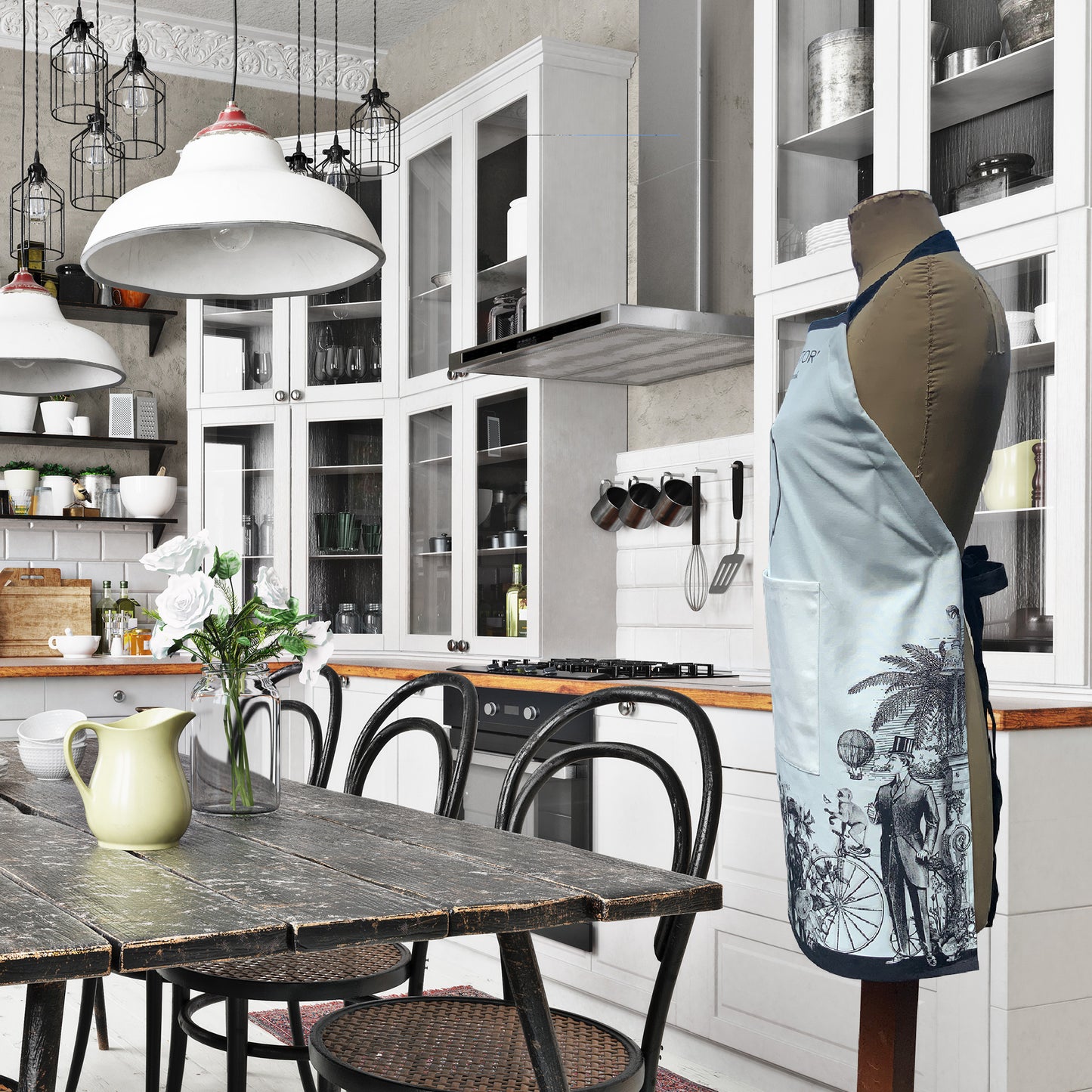 The "Sally Paskins" Apron depicts our logo portrait amongst a Victorian steampunk border.